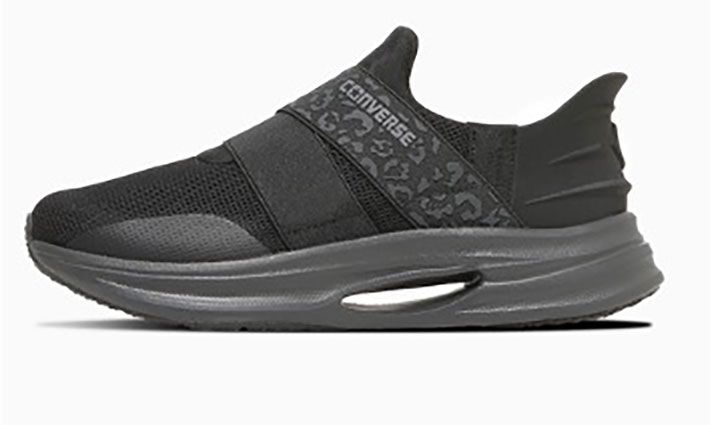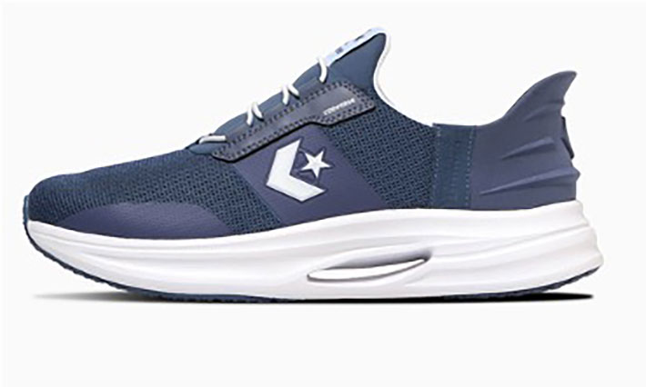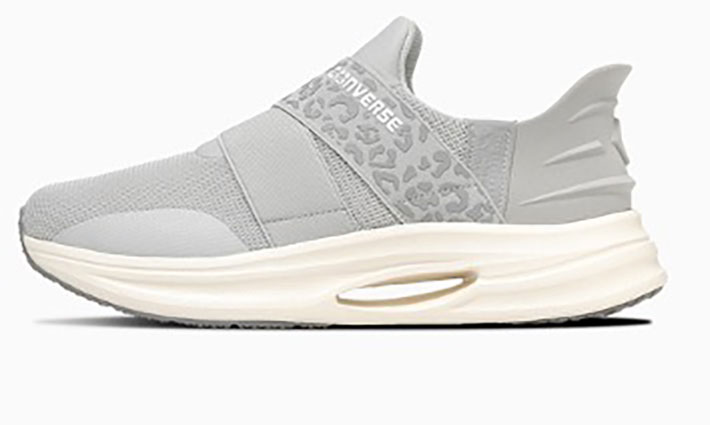 『ケイブスター スリットスライド』は、かかと部分に切れ目を入れた独自構造により、手を使わずにスムーズに着脱できるシューズです。