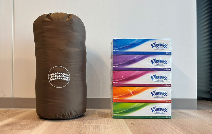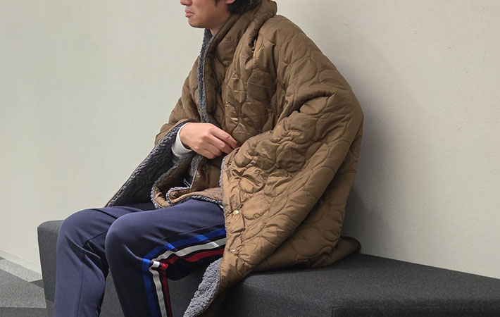 身体が大きい筆者ですらすっぽりと覆われてしまうほどのサイズ。ここまで大きいとは思っていなかったので、素直に驚いてしまいました。