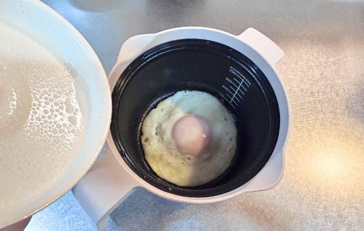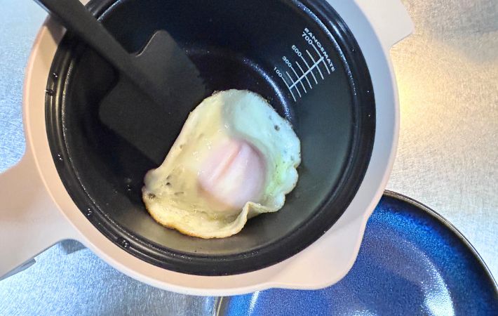 フライパンを使わず、火加減も気にせずに電子レンジだけで半熟の目玉焼きが作れるのは、忙しい朝にはかなり助かります。