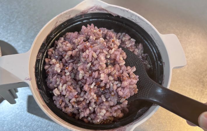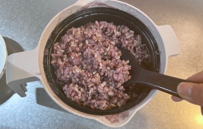 食べてみると雑穀特有のプチプチした食感もきちんと感じられ、炊飯器や土鍋で炊いた時と同じ仕上がりでした。