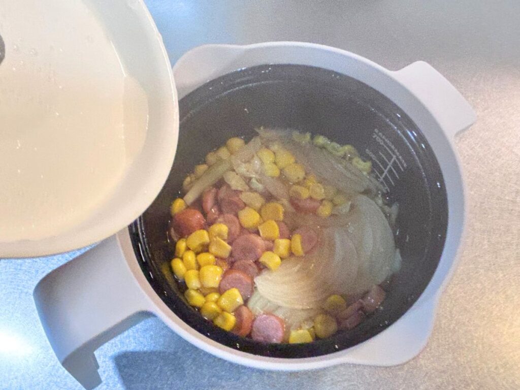 ただ、水の量がやや多かったのか、加熱中に吹きこぼれてしまいました。