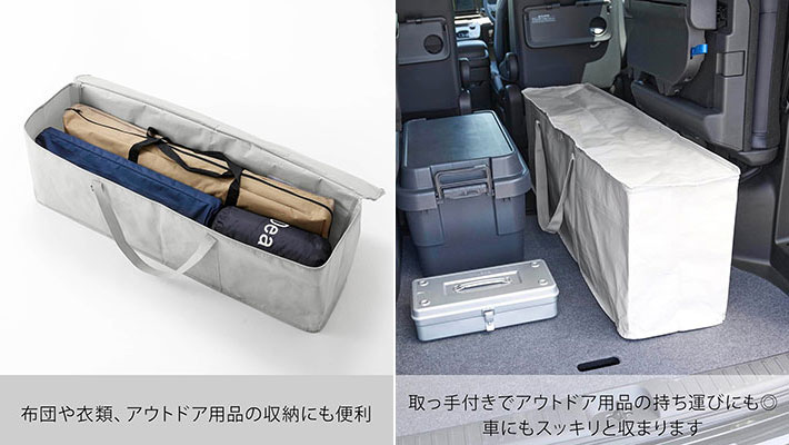 アウトドア用品や寝具、思い出の品物など、使用頻度が低くて置き場に困る上にかさばってしまう物を、すっきり収納するアイテムとしても使うのもいいですね。