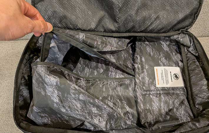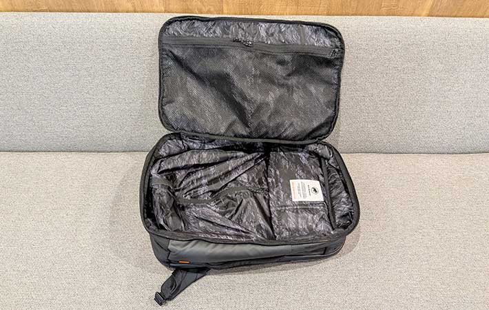 特にメインコンパートメントは、ほぼ一周ぐるりと大きく開く仕様になっているので大きな荷物も収納可能。