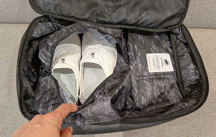 さらに、メインコンパートメントにはメッシュポケットやシューズなどを収納できるポケットもあるので、ジム通いをする人にも使いやすいでしょう。
