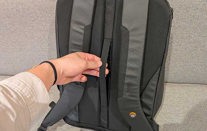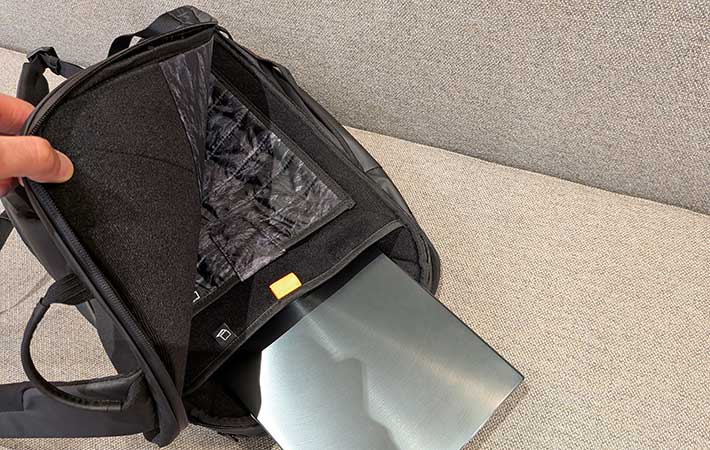 ほかにも背面側にはノートパソコンなどを収納できるクッションつきのポケットがあったり、小物を入れられるポケットがあったりと、さまざまな状況に対応できます。