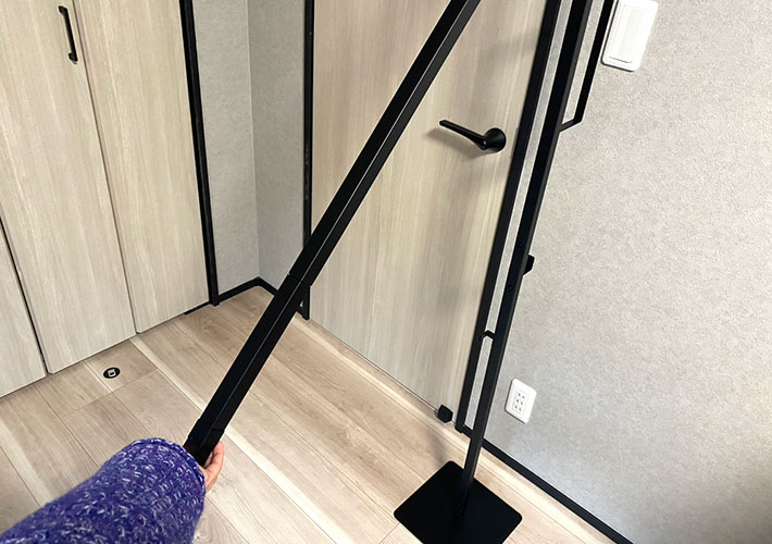 カラーはホワイトと迷いましたが、物干しスタンドには珍しいブラックを選択しました。ほかのインテリアにマッチして高見えするので大満足です。