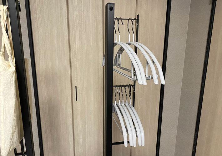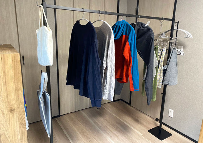 高さもしっかりあり、ワンピースやパンツなどの丈が長めの衣類も、床に接しづらいでしょう。