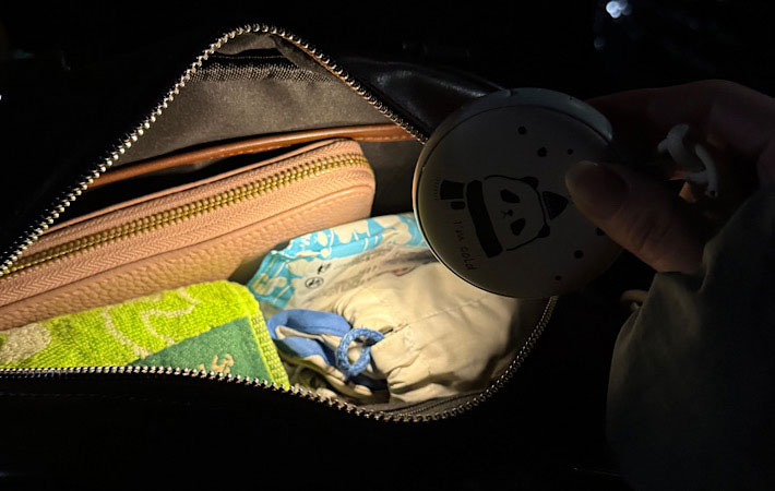 これが意外と便利!暗い場所でバッグの中の鍵を探したり、足元をちょっと照らした時などに、ちょっとした明かりとして使えますよ。
