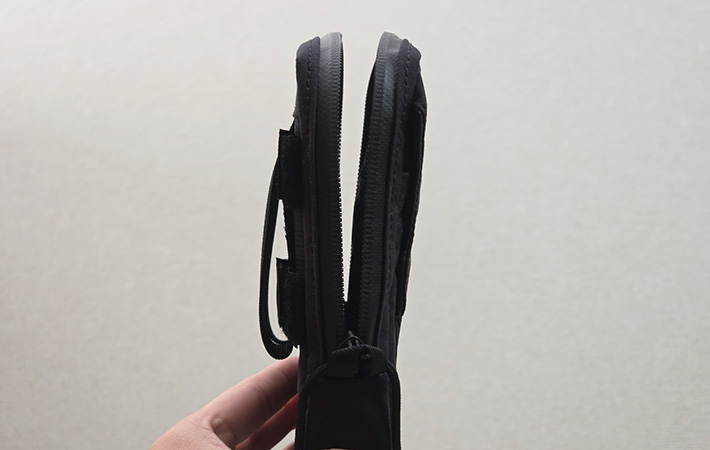 ただしマチがないため厚みのあるモノの収納には向かず、ケーブルやカード類などかさばらない小物の整理に適した作りです。