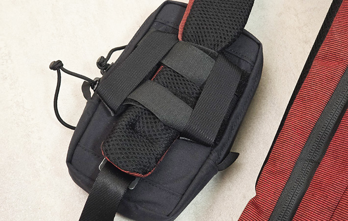 装着位置はちょうど肩の前あたりになるため、手を伸ばせばすぐにアクセスできるのが特徴。