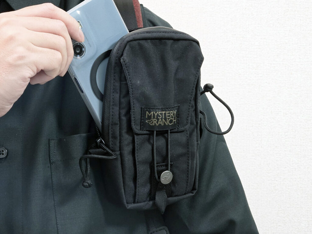 リュック特有の『あの手間』がなくなる! ミステリーランチのポーチが「完璧」と高評価 ファッション By - あずま 更新:2026-02-16 ※本記事はUPDATEが独自に制作したコンテンツです。また、本記事を経由して商品の購入が発生した場合に、ECサイト等から送客手数料を受領することがあります。 両手が空くリュックは、通勤からアウトドアまで幅広いシーンで活躍する便利なアイテムです。 しかし、荷物を取り出すたびにリュックを下して背負い直す必要があり、スマホのように頻繁に使うモノは出し入れが面倒に感じることもあります。 そんなプチストレスを解消してくれるアイテムが、人気バックパックブランド『ミステリーランチ』から販売されていたため、実際に購入して使い心地を試してみました! 肩ベルトに装着してスマホを素早く出し入れ! 本記事で紹介するのは、ミステリーランチの『TECH HOLSTER(テックホルスター)』というポーチです。 Amazonで見る 楽天市場で見る このポーチは、リュックのショルダーベルトに取りつけて使います。 本体背面に面ファスナーつきのベルトが備わっており、リュックのショルダーベルトに通して固定するだけで簡単に装着できる設計です。 面ファスナーつきのベルト ショルダーベルトに固定した様子 装着位置はちょうど肩の前あたりになるため、手を伸ばせばすぐにアクセスできるのが特徴。 スマホをここに収納しておけば、スムーズに出し入れ可能です。 通勤時に交通系ICを使って改札を通ったり、電車の中でちょっと通知をチェックしたりといった場面で、リュックを下す手間が発生しません! メインの収納スペースは、コンパクトな見た目に反して意外と大容量。 筆者は6.9インチの大型スマホに厚みのあるケースを装着していますが、ちょうどピッタリ収まるくらいのサイズ感でした。 前面と背面の両方に芯材が入っているため形が崩れにくく、外部からの圧迫や衝撃からスマホを保護しやすい点も安心です。 さらに、芯材のおかげでファスナーを全開にしても開口部が形を保ってくれるので広がりすぎず、スマホが落下しにくい構造になっています。 開口部が無駄に開かず中身が落ちにくい 収納スペースの内側には、サブポケットも用意されています。 ただしマチがないため厚みのあるモノの収納には向かず、ケーブルやカード類などかさばらない小物の整理に適した作りです。 筆者はケーブルを入れています 外側正面にもポケットを備えており、こちらはやや余裕のあるサイズ。 ワイヤレスイヤホンや小型のモバイルバッテリー、鍵など、使用頻度の高いアイテムを収納するのに便利です。 開閉はファスナーではなくコードをボタンに引っ掛ける仕様。ワンアクションでサッとアクセスできるため素早く出し入れできますよ。 ちなみに、本体生地には耐久はっ水コーティングが施されているとのことでした。 さらに、メイン収納のファスナーにはYKK製の止水ファスナーを採用。防水ではないものの、急な雨でも水が入りにくく、屋外での使用時にも安心感があります。 毎日の通勤・通学はもちろん、アウトドアシーンでも気兼ねなく使える仕様と言えるでしょう。 水が入りにくいファスナー リュックを下さずスマホへアクセスできる快適さは、一度使うと手放せないレベル。 シンプルな構造ながら実用性が高く、毎日のちょっとしたイライラを解消してくれます。 リュックを使っていてスマホの出し入れが面倒に感じている人は、ぜひチェックしてみてください! Amazonで見る 楽天市場で見る [文・構成/UPDATE編集部] 出典 Amazon/楽天市場 関連ワード ポーチ検証 この記事をシェアする Share Post LINE