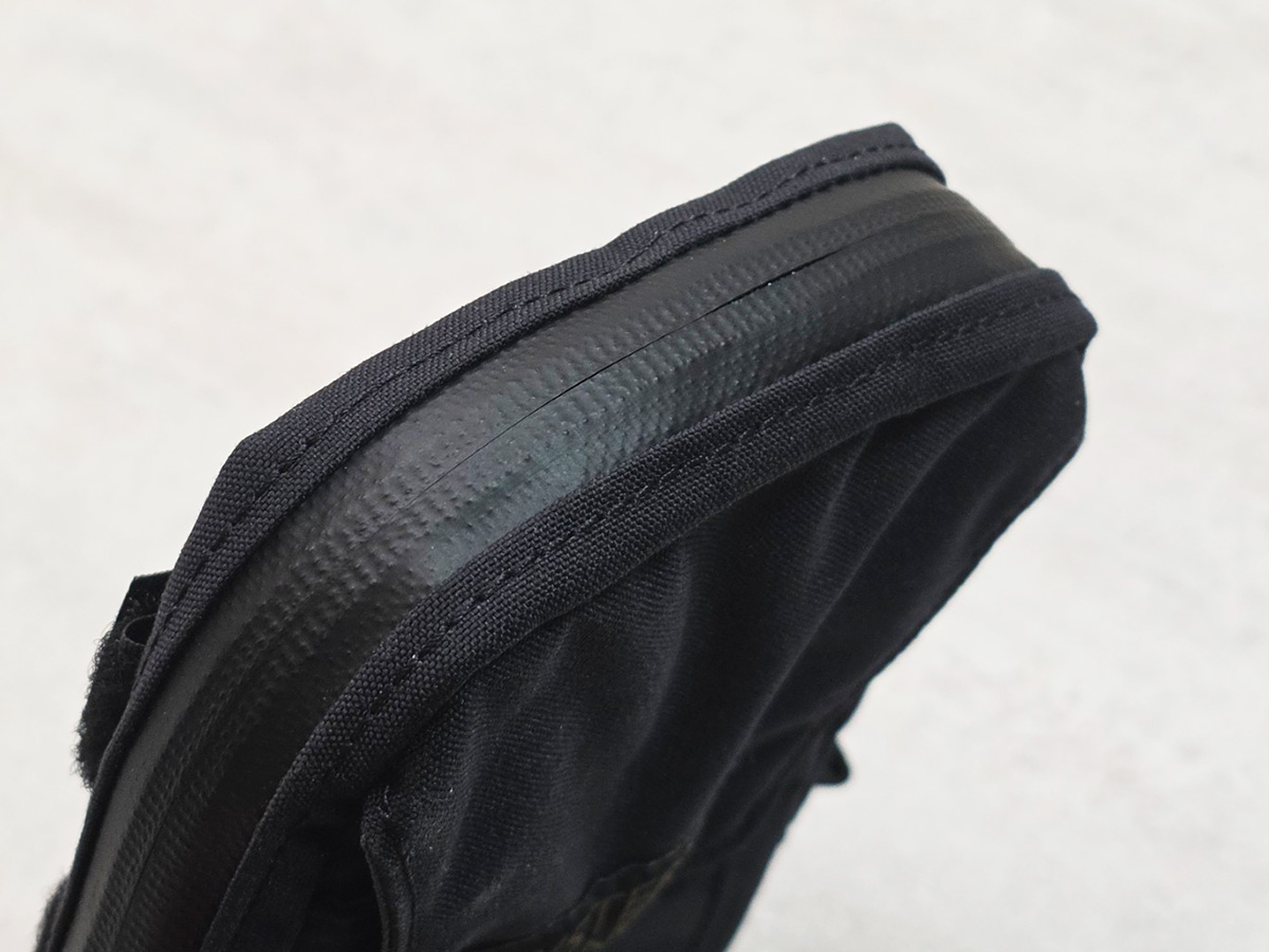 さらに、芯材のおかげでファスナーを全開にしても開口部が形を保ってくれるので広がりすぎず、スマホが落下しにくい構造になっています。