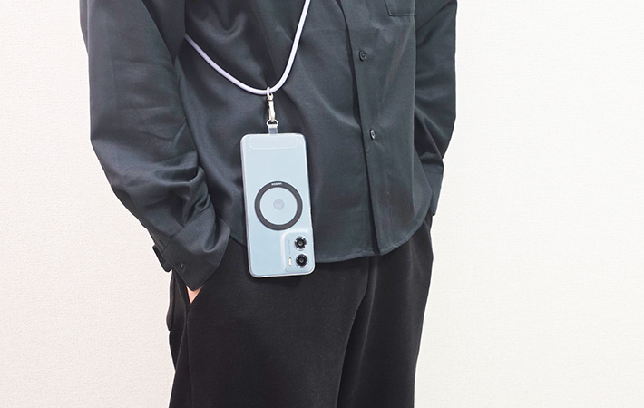 使う前は「すぐ外れないだろうか…」と心配していましたが、実際にスマホを肩から掛けてみたところ、耐久性や安定感は十分。