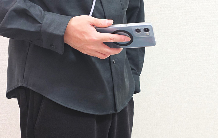 ケーブルの持ち忘れを防げるだけでなく、外出時のスマホの出し入れをスムーズにしてくれます。