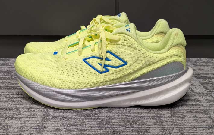『ニューバランス』の新作シューズ『1080v15』に驚愕 「通勤でも大活躍」「ほめちぎるのも分かる」 スポーツ・アウトドア By - プラム 更新:2026-02-17 ※本記事はUPDATEが独自に制作したコンテンツです。また、本記事を経由して商品の購入が発生した場合に、ECサイト等から送客手数料を受領することがあります。 まさか、こんなにやわらかい靴があるなんて…! 筆者が驚かされたのは、2026年1月15日に発売されたばかりの『ニューバランス』の新作ランニングシューズ『1080v15』です。 Amazonで見る 楽天市場で見る なんとこの靴、ニューバランスの中でも人気の高い『フレッシュフォームX』を進化させた、まったく新しい素材『INFINION(インフィニオン)』をミッドソールに搭載! 「めちゃくちゃやわらかい」「このクッション性はクセになる」と評判の『フレッシュフォームX』とは、どれほど違うのかを検証していきます。 履いて分かる新素材の実力 『1080v14』との違いは? 1つ前の世代の『1080v14』を履いていた筆者。 ミッドソールに極厚の『フレッシュフォームX』が使われていた『1080v14』は、ほかにはない極上のクッション性でお気に入りでした。 Amazonで見る 楽天市場で見る 「雲の上を歩いている」と表現するのにピッタリの靴だったのですが、『1080v15』はその上を行くクッション性だと言えるでしょう。 『1080v15』に使われているインフィニオンは、指でつぶせるほどやわらかいのが特徴。 インフィニオンのロゴ 想像以上にやわらかい 厚みも十分にあり、『1080v14』と同様、衝撃もしっかりと吸収してくれそうです。 ちなみに、『フレッシュフォームX』とインフィニオンを比べてみるとこんな感じ。 左がインフィニオン 『フレッシュフォームX』で特徴的だった角ばった模様がインフィニオンではなくなり、よりスッキリとした見た目になっています。 『1080v15』のアッパーはメッシュ素材が全面に使われていますが、凹凸があるため表情も豊か。 ただ薄いだけではなく、デザイン性と通気性を備えています。 アウトソールは耐久性とグリップ力の高いラバーを使用。 かなり薄めではありますが、そのぶん軽くなっているようです。 基本的な性能が分かったところで、実際に履いていきましょう。 「インフィニオンすげー」 履けば感動するクッション性と反発性 ジャストサイズが26.5cmの筆者が、ハーフサイズアップした27cmを履いた状態がこちら。 横幅がDサイズなので、ハーフサイズアップでも十分なフィット感を得られます。 ランニングシューズとして使っても、特に問題のないサイズ感でしょう。 ちなみに同サイズの『1080v14』と並べて上から見た写真がこちら。 左が1080v15 『1080v15』のほうがよりスッキリとした、ランニングシューズらしい見た目となっています。 違いは見た目だけにとどまりません。なんといっても履いた瞬間に感動したのがクッション性! 『フレッシュフォームX』の『1080v14』を履いた時ですら、そのクッション性に驚かされましたが、『1080v15』はその上を行くやわらかさです。 左が1080v15 さらにインフィニオンがすごいのは、クッション性だけでなく反発性もしっかりあるところ。 着地した時の衝撃をしっかりと吸収した上で、ポヨンと弾むような反発性を感じられるのです。 『1080v15』を履いて数km走ってみましたが、足裏や関節への衝撃はかなり抑えられていました。 夜道でも目立って安心 インフィニオンすげー! 足への衝撃も少なく、弾むような足取りで前進できるため、一般的なシューズよりも走りやすく感じます。 ただやわらかいだけではなく、走りやすさも考慮されているミッドソールと言えそうです。 『1080v15』の気になるところや口コミの評価は? 『1080v15』を履いていて気になったところは2点。 ミッドソールがかなりやわらかいため、長時間ジッとしていることの多い立ち仕事には向かない印象はあります。 とはいえランニングやタウンユースくらいなら問題なく履くことができるでしょう。 もう1つは、アウトソールが薄いこと。 耐久性の高いラバーを使用しているとはいえ、日常的に使うのはちょっと気が引けそうです。 その分軽くて履きやすいことは確かなのですが、軽さと耐久性のどちらを取るかで印象が変わるでしょう。 『1080v15』は新商品ですが、すでにネット上にはさまざま口コミがあがっています。 ・みんながほめちぎるのも分かる。クッション性が素晴らしい。 ・クセがないので練習でも大会でも履ける。 ・何年もこのシリーズを履いている。新作も通勤、ウォーキングにと大活躍している。 ・ありきたりだけど、雲の上を歩いているという表現がピッタリ! 多くの人がそのクッション性の高さに魅了された模様。 日常的に使用しやすいカラーもあるので、通勤やウォーキングでも役立ってくれるようです。 ニューバランスの新作1080v15を前作と比べてみた まとめ 2026年1月に発売されたばかりの新作ランニングシューズ『1080v15』を履いてみました。 人気の高い前作