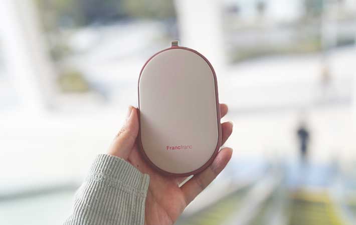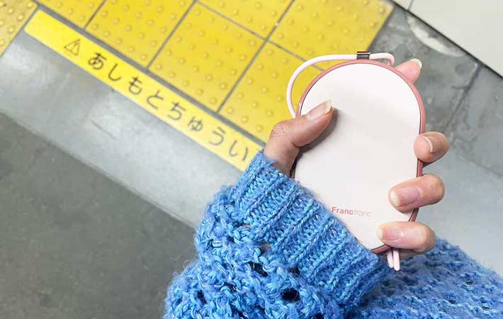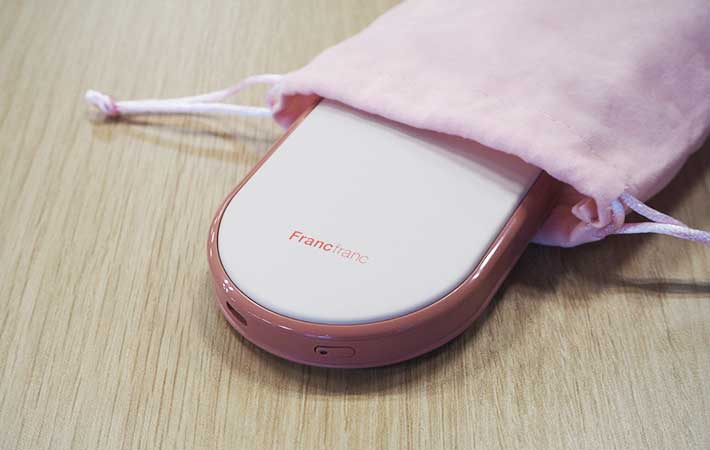 「朝晩用の羽織りいらないわ」季節の変わり目に手放せない“荷物にならない”オシャレあったかグッズ ガジェット By - pon 更新:2026-02-25 ※本記事はUPDATEが独自に制作したコンテンツです。また、本記事を経由して商品の購入が発生した場合に、ECサイト等から送客手数料を受領することがあります。 1日で気温が変化しやすい季節の変わり目に、「何を着たらいいかが分からない…」と思うことはありませんか。 そして、冬から春に変わる頃、筆者はこんなストレスを感じます。 予備の上着があると安心だけど、使わないとただ重いだけ! 「肌寒さも荷物が増えるのも、我慢したくない」と思っていたところ、荷物にならないオシャレなあったかアイテムを見つけました! 使いたい時だけ使えるモバイルバッテリーつき電子カイロ 『繰り返し使えるカイロ ピンク』をAmazonでチェック 『繰り返し使えるカイロ ピンク』を楽天市場でチェック 筆者が最近購入したのが、『Francfranc(以下、フランフラン)』の『繰り返し使えるカイロ』。 繰り返し使えるカイロ ピンク 基本スペック ・サイズ:幅7.0cm×高さ11.5cm×奥行1.9cm ・重量:135〜145g ・温度:弱45℃、強50℃ ・バッテリー容量:4,000mAh ・充電時間(約):3.5時間 ・連続使用可能時間(約):45℃で5時間、50℃で3.5時間 ・付属品:ポーチ、TypeCtoCケーブル、ストラップ ※連続使用可能時間は目安です。使用する環境の温度やバッテリーの劣化度合いにより異なります。 使いたい時だけささっと使える充電式のカイロで、モバイルバッテリー機能もついているんです。1つ2役で、まさに荷物を減らしてくれるあったかアイテム! そして、「さすがインテリアブランドのフランフラン」と思えるデザイン性の高さもグッドなんです。 ガジェット感が控えめで、パッと見ただけだと、電子カイロにもモバイルバッテリーにも見えません。毎日持ち歩くものだから、やっぱりデザインがかわいいとテンションが上がります! コスメや美容グッズのようなデザイン 筆者が購入したのはマットな手触りのピンク。そのほか、光沢のあるオーロラタイプや、波打った表面が特徴のウェーブタイプ、花柄のものなど、豊富なデザインが揃っていますよ。 長く使えるものなので、お気に入りの1点を選べるのは嬉しいですよね。 『繰り返し使えるカイロ オーロラ ホワイト』をAmazonでチェック 『繰り返し使えるカイロ オーロラ ホワイト』を楽天市場でチェック サイズ感や肌触りは? まずサイズ感ですが、手のひらにすっぽり収まる大きさで、2cm以下と薄く握りやすい厚みです。 実際に使ってみて分かったのが、「このちょっとマットですべすべとした質感がすごくいい!」ということ。 カイロとして使うと、心地よく温もりが伝わってくる絶妙な触り心地なんです。手に吸いつくようにフィットして、気がついたらずっと触っていました…! 表面に光沢があるものや凹凸があるものなど、別の質感のラインナップもありますが、筆者は触り心地が抜群のこのタイプがおすすめ。ピンク以外にグレーもありますよ。 『繰り返し使えるカイロ グレー』をAmazonでチェック 『繰り返し使えるカイロ グレー』を楽天市場でチェック すぐ温まるから、すきま時間の上着代わりに! カイロが温まるまでの時間は約10秒。少し肌寒い季節、朝の電車の待ち時間などに、ささっと暖を取れて便利なんです。通勤のバスに座れるよう、早めに並んでいたら冷えてきた、といった場合にも活用できそうですね。 また、仕事のランチ休憩で外に出る時、「肌寒いけれど、お店についたらすぐ脱ぐし、コートを着るほどでもないんだよな…」という場合にも活躍してくれました。 「ちょっと寒いかも?」という時、持っていると安心! そのほか、テーマパークのアトラクションに並ぶ時や、お花見の場所取りで肌寒くなってきた時にも役立ちそう!春のお出かけの必携品になりそうです。 予備の上着もモバイルバッテリーも不要で、使い捨てカイロのようにゴミも出ません。持ち歩きのストレスがぐんと減って、外出が軽やかになりました。 どれくらい温かい?45℃と50℃で変わる? 温度は45℃、50℃の2段階。ボタン操作で簡単に調整できます。 電源オフ状態からボタンを2回押すと50℃(写真左)に、もう1回押すと45℃(写真右)に 筆者の体感として、この2段階で思ったより温かさに変化がありました!季節やシーンでちゃんと使い分けができそうです。 45℃は手持ちで使える温度。手先などの冷えを少し温めたい時によさそうですね。 50℃はしっかりと暖が取れる熱さです。直接手で持ち続けるとなかなか熱いので、付属のポーチに入れるなどして調節しながら使っています。 連続使用可能時間は45℃で約5時間、50℃で約3.5時間です。使用環境やバッテリーの劣化度合いで変わってくるため、目安として参考にしてみてください。 気になる安全性は? 電子カイロを使うとなると、「カバンやポケットの中で、電源が勝手にオンにならない?」と不安になる人も多いはず。 