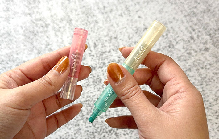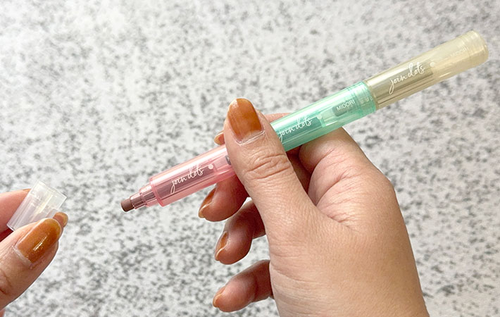 『ジョインドッツ』には6種のカラー展開がありますが、筆者が選んだのは淡い発色の『ミルキー』。ミルキーピンク・ミルキーグリーン・ミルキーベージュの組み合わせで、主張しすぎないニュアンスカラーが特徴です。