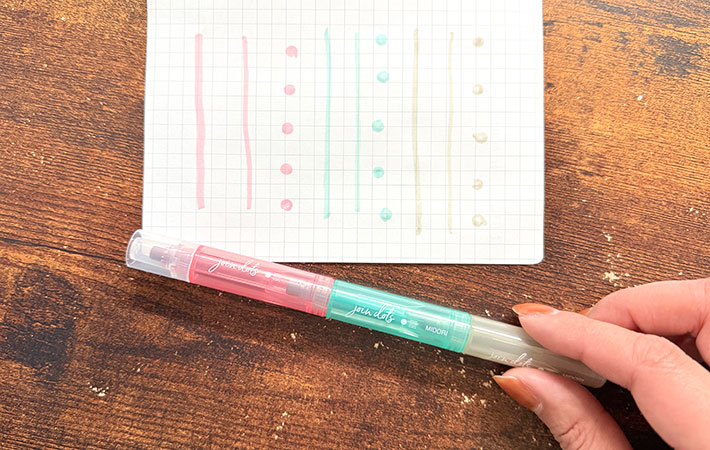 水性ペンというと、インクが出すぎて紙がヨレることがありますが、ジョインドッツはその心配がほとんどありませんでした。