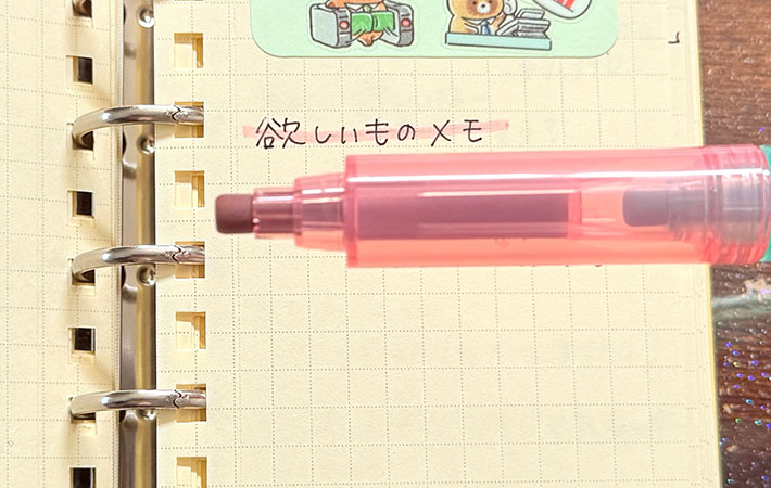 特に好印象だったのは、黒インクの文字を邪魔しないところ。上からなぞってもにじみにくく、補足・強調・分類といった役割を自然に担ってくれます。