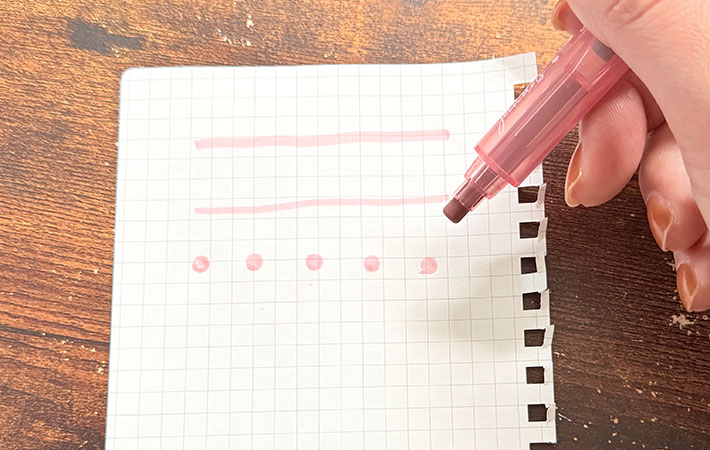 一見すると、優しい色合いのカラーペンですが、実際に使ってみると、配色・書き心地・構造まで、よく考え抜かれていることに気づきます。かわいいだけで終わらない、実用性の高さが光る1本でした。