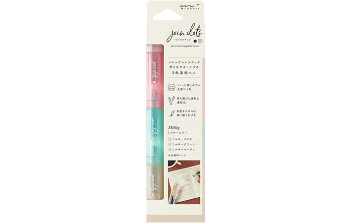 「手帳がかわいく整う」「ノート整理が快適」 一度使ったら手放せなくなった3色連結ペン『ジョインドッツ』がこちら 新着 By - 小林ユリ 更新:2026-02-23 ※本記事はUPDATEが独自に制作したコンテンツです。また、本記事を経由して商品の購入が発生した場合に、ECサイト等から送客手数料を受領することがあります。 仕事のメモ、手帳の記録、アイディア出し。項目ごとに色を使い分けたいけど、ペンが増えるのはちょっと面倒…。 「色ペンを何本も持ち歩くとペンケースがかさばるし、いざ使おうとすると目当てのペンが見つからない」 そんな小さなストレスを感じていた時に出合ったのが、『ミドリ』の水性ペン『連結ペン ジョインドッツ』でした。 一見すると、優しい色合いのカラーペンですが、実際に使ってみると、配色・書き心地・構造まで、よく考え抜かれていることに気づきます。かわいいだけで終わらない、実用性の高さが光る1本でした。 3色連結でペン選びがぐっとラクに Amazonで見る 楽天市場で見る アイディアやメモを自由に書き留め、色分けして整理するノート術『コモンプレイスブック』が最近注目を集めています。筆者もノートを活用することが多く、色ペンを使う機会が増えていました。 シールを使って色分けをしていたこともありますが、貼る作業が増えるのが少し面倒に感じていたのも正直なところ。 そこで取り入れてみたのが『ジョインドッツ』。3色のペンが1本に連結されているのが最大の特徴です。 それぞれ独立した小さなペンをカチッとつなぐ構造で、必要な色を下側にスライドさせて使います。 3色が1本にまとまっているので、色を切り替えたい場面でもペンケースを探す必要がありません。机の上がペンだらけになることもなく、作業に集中できます。 連結していても意外なほどコンパクト。一般的なペンと比べると若干大きいものの、さほど変わりはありません。 ペンケースにもすんなり収まります。省スペースで3色持ち歩けるのは、想像以上に便利でした。 派手すぎず、ちょうどいいミルキーカラー 『ジョインドッツ』には6種のカラー展開がありますが、筆者が選んだのは淡い発色の『ミルキー』。ミルキーピンク・ミルキーグリーン・ミルキーベージュの組み合わせで、主張しすぎないニュアンスカラーが特徴です。 パステルカラーほど甘くなく、かといって地味すぎない色味で、ノート全体の雰囲気を壊さずに情報を整理できます。 もちろん、コモンプレイスブック以外でも活躍の場は多め。蛍光ペンほど派手ではありませんが、しっかり視認性があるので、仕事のメモや会議ノート、資料のマーキングにも違和感なく使えます。 特に好印象だったのは、黒インクの文字を邪魔しないところ。上からなぞってもにじみにくく、補足・強調・分類といった役割を自然に担ってくれます。 ただ、「濃い発色が好き」という人には、ミルキーカラーは少し物足りなく感じるかもしれません。その場合は、より鮮やかな『ブライト』や落ち着いた『ダスティ』など、別カラーを選ぶのがおすすめです。 Amazonで連結ペン ジョインドッツ ブライトを見る 楽天市場で連結ペン ジョインドッツ ブライトを見る Amazonで連結ペン ジョインドッツ ダスティを見る 楽天市場で連結ペン ジョインドッツ ダスティを見る インク量がほどよく、紙を選ばない 水性ペンというと、インクが出すぎて紙がヨレることがありますが、ジョインドッツはその心配がほとんどありませんでした。 インク量がしっかりコントロールされていて、乾きも早め。ノートはもちろん、手帳や少し薄めの紙でも使いやすい印象です。 ドットもラインも1本で ペン先は、丸みのある形状で、軽く押せばドット、角度をつければラインが引けます。 斜めにするとやや細めの線、垂直に引くと太めの線になり、線幅の調整も感覚的。 箇条書きの頭にドットを打ったり、ToDoのチェックマーク代わりに使ったり、簡単な囲み線を書いたりと、使い道は思った以上に幅広いです。 書く作業のテンポを邪魔せず、ノート整理をさりげなく助けてくれる1本だと感じました。 『ジョインドッツ』は、こんな人に向いていそうです。 ・手帳やノートで、色分けをよく使う ・派手すぎないカラーペンが好き ・文具にも実用性を重視したい ・持ち物はできるだけコンパクトにしたい ノートや資料作りが整う1本 『ジョインドッツ』は、単なるかわいい文房具ではなく、情報整理をそっと後押ししてくれる道具という印象でした。 デジタル中心の今だからこそ、アナログ文具の完成度の高さがかえって新鮮に感じられます。ペン1本で、メモの使い勝手が少し上がる…そんな小さなアップデートを求めている人に、ちょうどいいアイテムです。 気になった人は、ぜひチェックしてみてくださいね。 Amazonで連結ペン ジョインドッツ ミルキーを見る 楽天市場で連結ペン ジョインドッツ ミルキーを見る [文・構成/UPDATE編集部] 出典 Amazon/楽天市場 