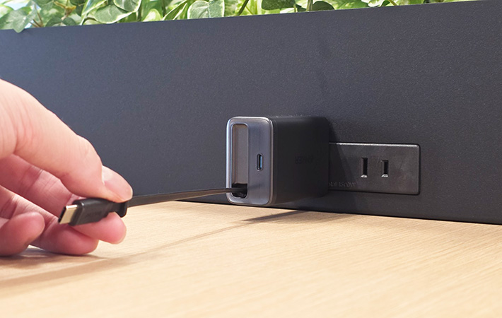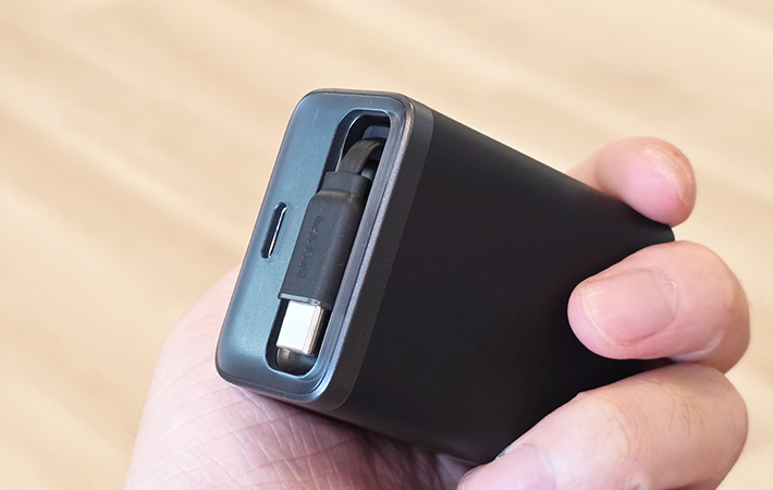 最近は、ケーブルが絡まったり持ち忘れたりする心配がない、USB-Cケーブルを本体に内蔵した巻き取り式モデルが注目を集めています。