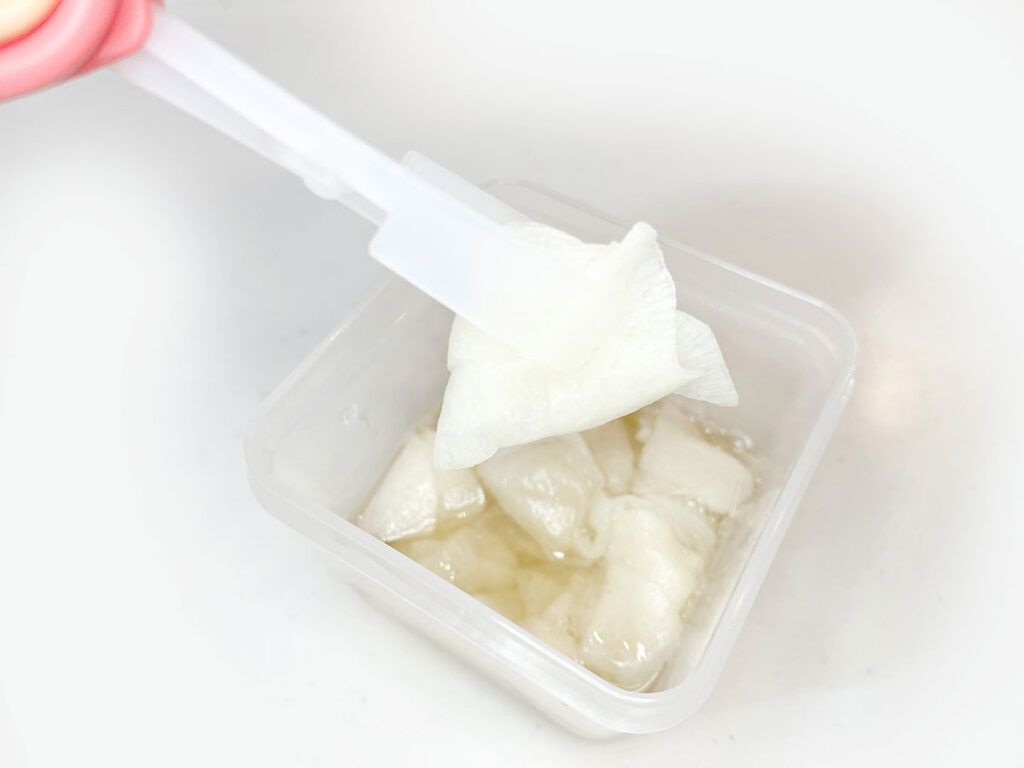 蓋を開けてトングを使ってみると…しっかり浅漬けをピックアップすることに成功!