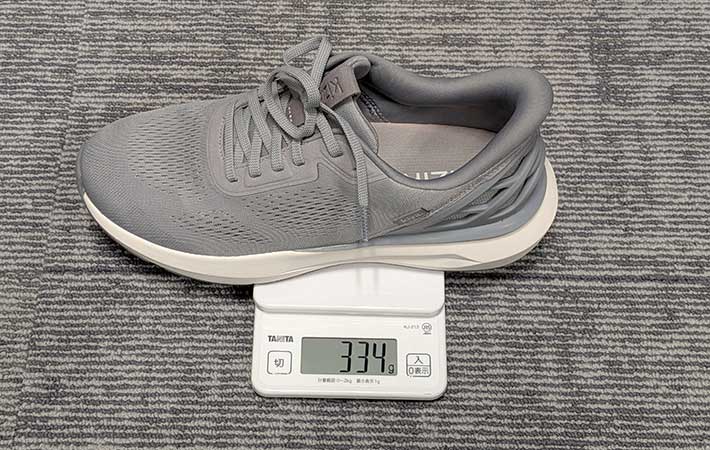 特徴的なヒール部分が重そうに見えますが、27cmモデルで重さは334g程度です。