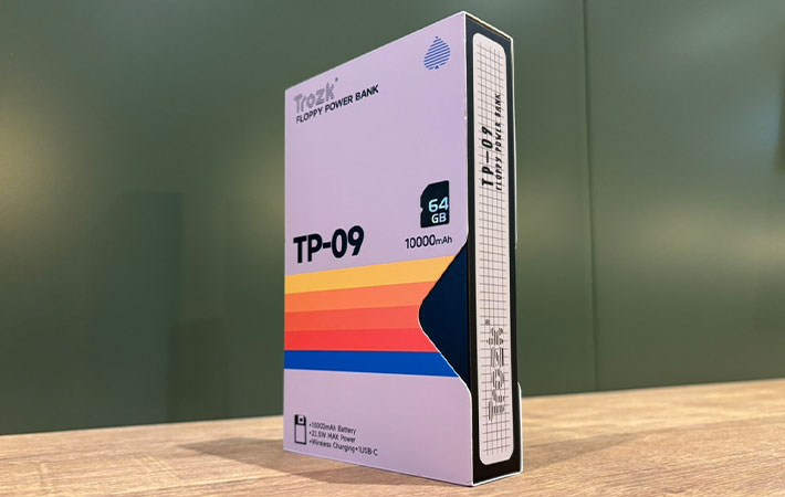『TP09U』はバッテリー容量10,000mAhと大容量のモバイルバッテリーで、フロッピーディスクをかたどったデザインが特徴です。