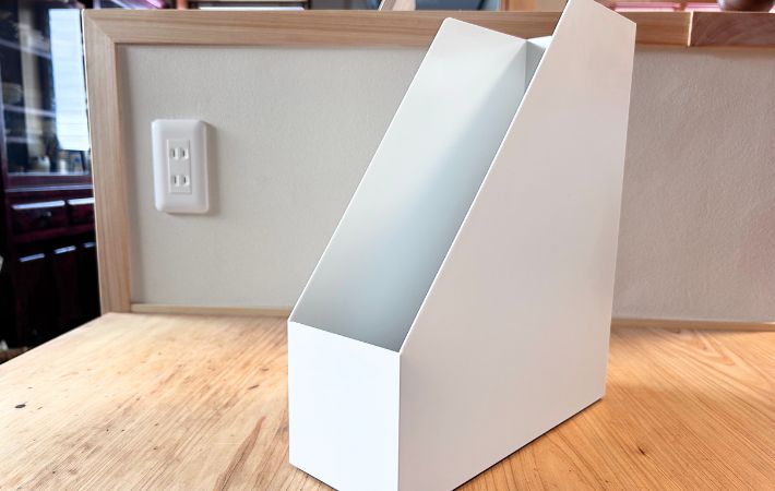 高さがあり、A4サイズの書類や雑誌、冊子などを立てて収納するのに便利な定番アイテムです。