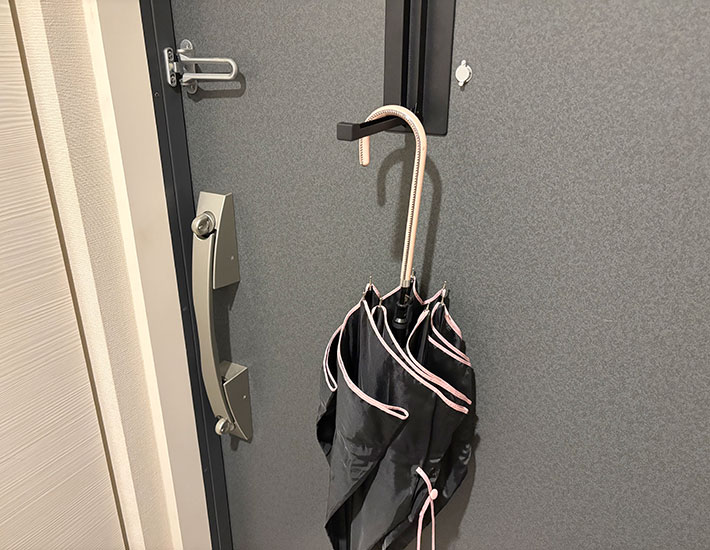 雨の日には傘置き場として活用。濡れたまま掛けておけば、次の日には乾いていることも多く、地味に助かっています。