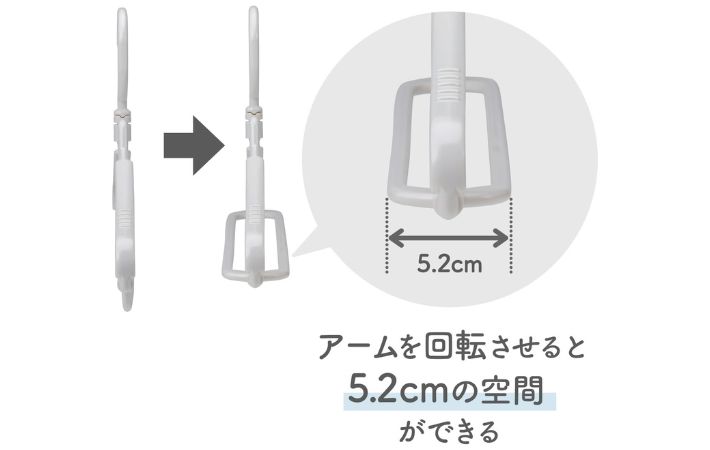 アーム部分を開くことで立体的になり、衣類を干した時に自然と約5.2cmの空間が生まれます。