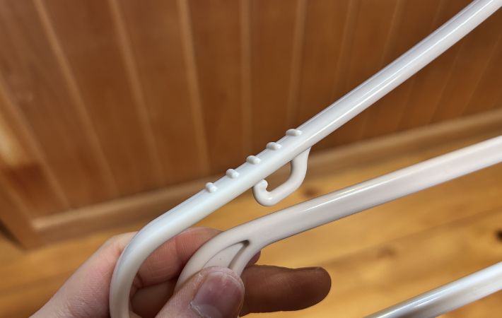一方、厚手のパーカーや濡れたまま重みのある衣類を掛けると、設置場所によっては外れやすいと感じることも。