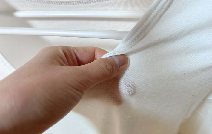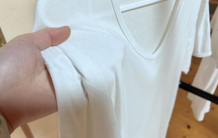 検証でもわかったように脇や背中、縫い目まわりなど、普段ならじめっと感が残りやすい部分が以前よりさらっと仕上がるようになりました。