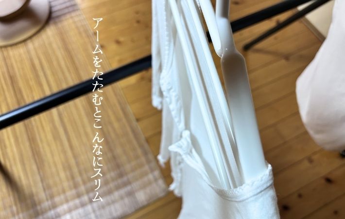 さらにアームを閉じるだけでスリムな形状になるので、そのままクローゼットに収納することも可能。