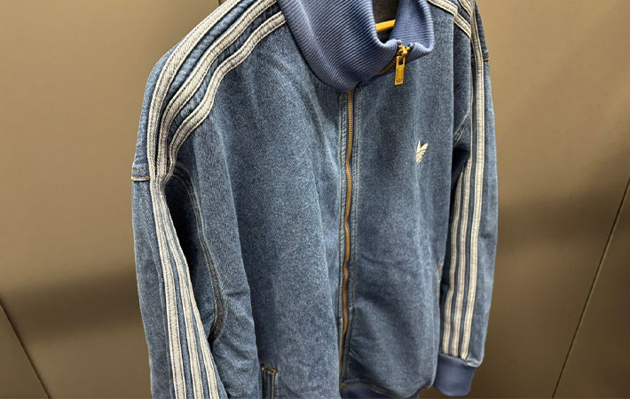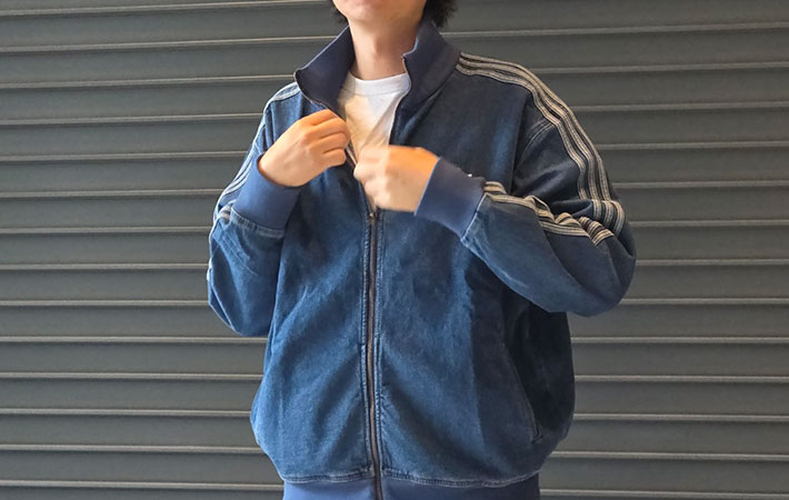 デニム生地と聞くと硬そうなイメージがあるかもしれませんが、『アディカラー デニム ファイヤーバード トラックトップ』は比較的柔らかめのものを使用。