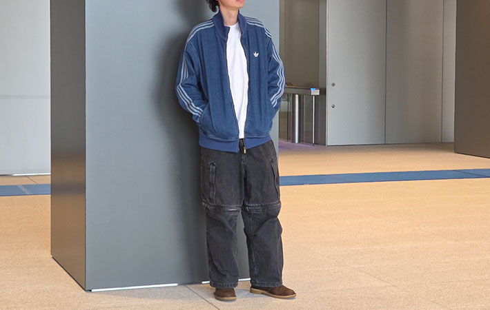 ここに『アディカラー デニム ファイヤーバード トラックトップ』を合わせるだけで、なかなかいい感じにまとまりが生まれました。