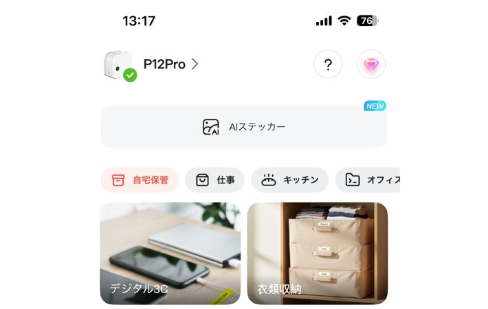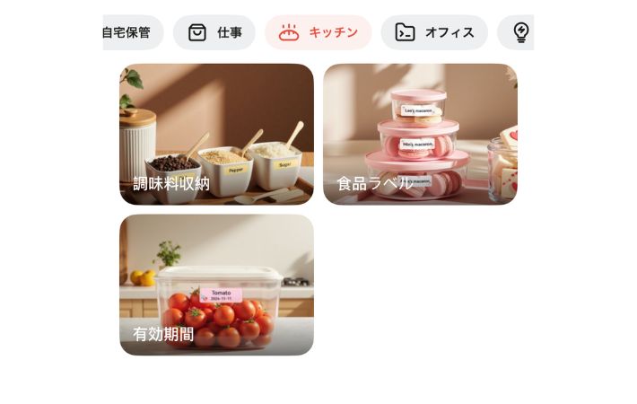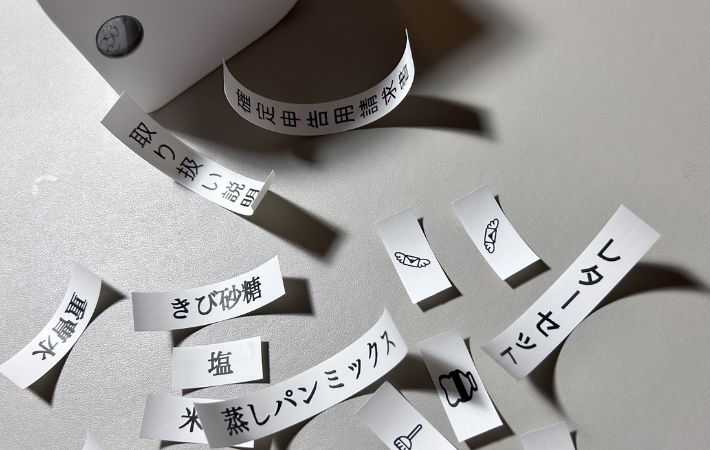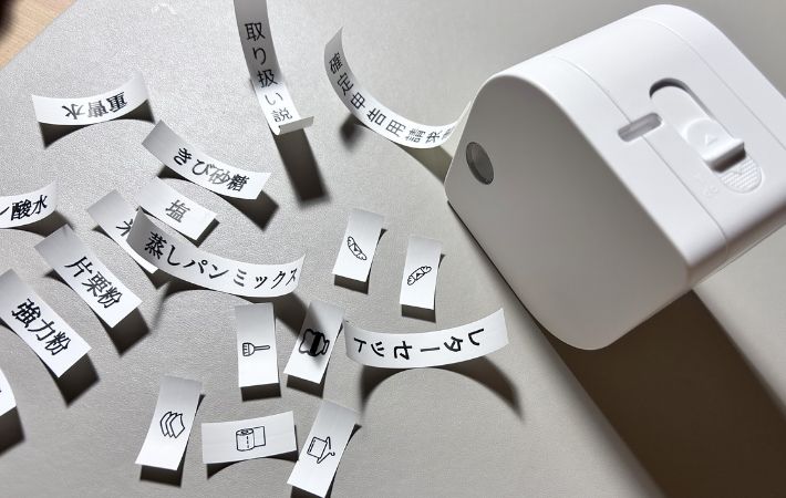 欲しい時にささっと作れる! スマホで完結する『ラベルプリンター』で家中がすっきり整いました 新着 By - shio 更新:2026-03-02 ※本記事はUPDATEが独自に制作したコンテンツです。また、本記事を経由して商品の購入が発生した場合に、ECサイト等から送客手数料を受領することがあります。 収納をすっきり整えたいと思った時、効果的なのが『ラベリング』という作業。 どこに何があるのか一目で分かるうえ、見た目にも統一感が生まれ、暮らしやすさがぐっとアップします。 手書きでもいいのですが、最近注目されているのが『ラベルプリンター』です。 とはいえ、「設定が難しそう」「いちいちパソコンを起動させるのが面倒」「こまめに続けられる自信がない…」そんなふうに、少しハードルの高さを感じている人も多いのではないでしょうか。 そんな悩みの味方になってくれるのが、スマホ対応のラベルプリンター『Memoking P12 Pro』です。 Amazonで『Memoking P12 Pro ラベルライター』を見る 楽天市場で『Memoking P12 Pro ラベルライター』を見る 専用のアプリを使って、思い立った時にその場でサッと作れるというラベルプリンター。 機械が苦手でも手軽に作成できる上、本体がとってもコンパクトなので、「使いやすい」「お値段以上」と高く評価されています。 今回は、「ラベリングは気になるけれど面倒くさそう…」と感じていた筆者が、『Memoking P12 Pro』を実際に使ってみた感想をご紹介します。 目次 1. 「難易度高い?」と感じていたラベリングが手軽に1.1. 簡単に接続できる1.2. 豊富なデザイン1.3. 日常使いにGOOD!専用のラベルテープ2. さっそく印刷してみた3. キッチン周りと収納にラベリング4. まとめ 「難易度高い?」と感じていたラベリングが手軽に 商品名:Memoking P12Proラベルライター サイズ:縦82mm×横82mm×奥行き61mm 重さ:219g 解像度:203dpi バッテリー:1000mAh 対応システム:iOS、Android 接続方法:Bluetooth接続 対応ラベル:感熱ラベル、熱転写ラベル、リボンラベル、布地ラベル パッケージ内容:ラベルライター本体×1、12 mmお試しラベル×1、日本語取扱説明書×1、電源ケーブル×1 簡単に接続できる 実は筆者、以前からきれいにラベリングされた収納に憧れがあり、「ラベリングってかっこいいな」「いつかしてみたい」と思っていたんですよね。 しかし、ラベルプリンターは設定が難しそうだったり、パソコンが必要だったりと、なんとなくハードルが高いイメージがあり、なかなかチャレンジできませんでした。 でも、この『Memoking P12 Pro』はスマホと連携して使えるタイプということで、購入することに。 ケーブルは不要でBluetoothで接続できるところも購入の決め手になりました。 さらに本体は充電式なので、電池交換の手間がないのも魅力です。 まずはスマホに専用アプリ『Print Master』をダウンロードし、本体の電源をオンにします。 アプリを起動したら『クリックで接続』をタップし、表示された中からつなげたいプリンターを選ぶだけ。すぐに使い始めることができます。 面倒な設定や難しい操作は一切なく、想像していたよりもずっと簡単で拍子抜け。 「こんなに手軽なら、もっと早く買えばよかった…!」と、この時点でちょっぴり後悔してしまったほどです。 豊富なデザイン 専用アプリ『Print Master』の魅力は、デザインのバリエーションがとても豊富なところ。 1000種類以上のアイコンと30種類以上のフォント、さらに70種類以上のフレームが用意されています。 また、ラベルの長さや文字の大きさも自由に調整できるため、貼りたいスペースに合わせた最適なサイズで作成できます。 場所やアイテムに合わせてバランスよく作れるので、見た目もすっきり整った印象に。 「デザインを考えるのが苦手…」という人でも安心して使えるようにあらかじめ定型テンプレートも用意されていますよ。 直感的な操作で、世界に一つだけのオリジナルラベルをスムーズに作成可能。 シンプルな整理用ラベルから、ちょっとおしゃれなデザインまで、用途に合わせて自由にアレンジできるのが楽しいです。 筆者 一部のデザイン素材は有料コンテンツとなっているため、よりこだわったデザインを楽しみたい場合は課金が必要です! 日常使いにGOOD!専用のラベルテープ 今回の印刷には、『Phomemo Memoking P12/P12 Pro』専用の『純正感熱ラベルテープ』を使用しました。 Amazonで『Phomemo Memoking P12 P12Proラベルプリンター対応 テープ ラベル シール 純正』を見る 楽天市場で『Phomemo Memoking P12 P12Proラベルプリンター対応 テープ ラベル シール 純正』を見る 白地に黒文字のシンプルなデザインは視認性が高く、どんな収納やアイテムにもなじみやすいです。 さらに防水・防油仕様のため、水まわりやキッチンでも安心して使えるのもポイント。 濡れたり油がついたりしても文字がにじみにくく、調味料ボトルや保存容器、洗面所のアイテムにもピッタリです。 また、『感熱印刷』と『熱転写』の両方に対応しているのも特徴で、色あせしにく