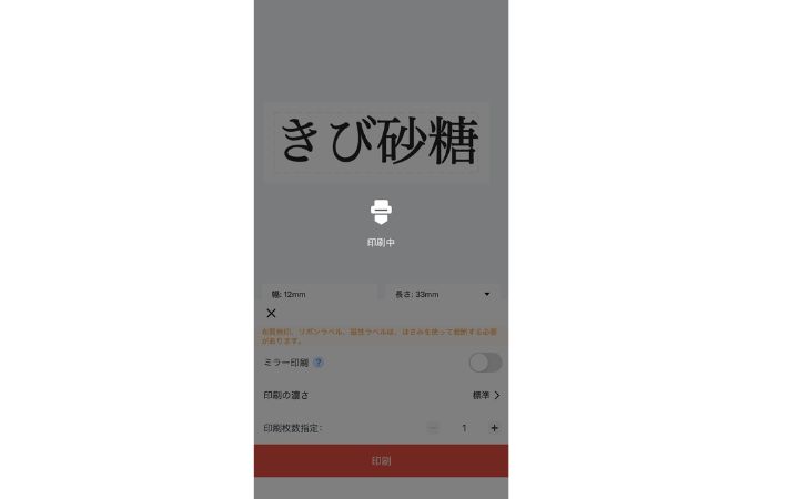 印刷ボタンをタップすると…。