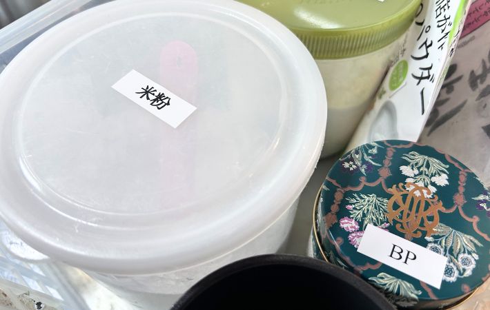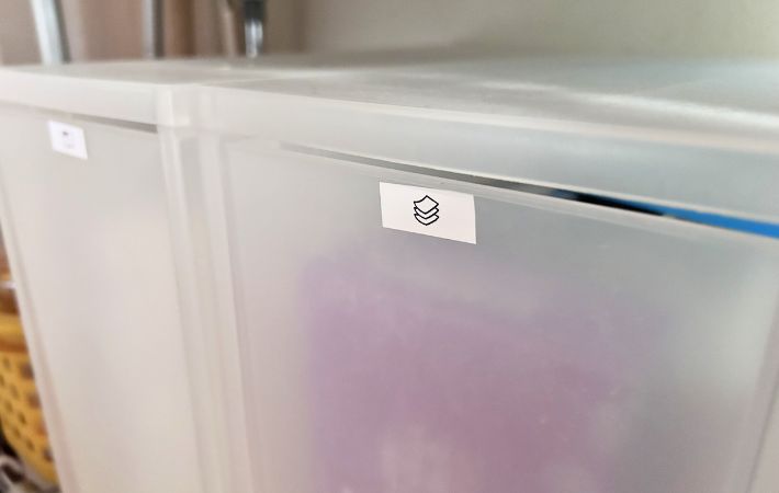 さっそく作成したラベルを容器や収納ケースに貼ってみました。