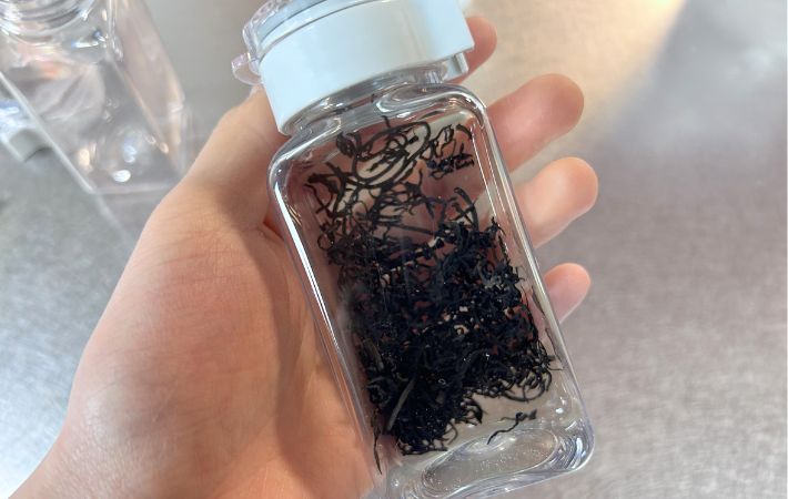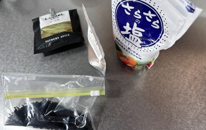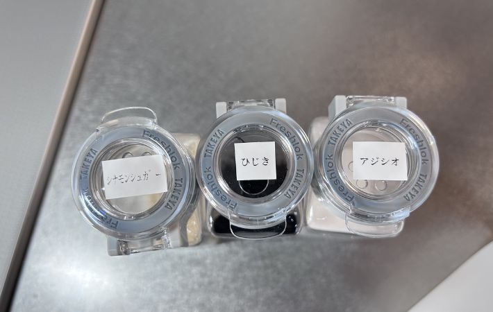 今回は、塩とシナモンシュガー、乾燥ひじきを入れて使用します。