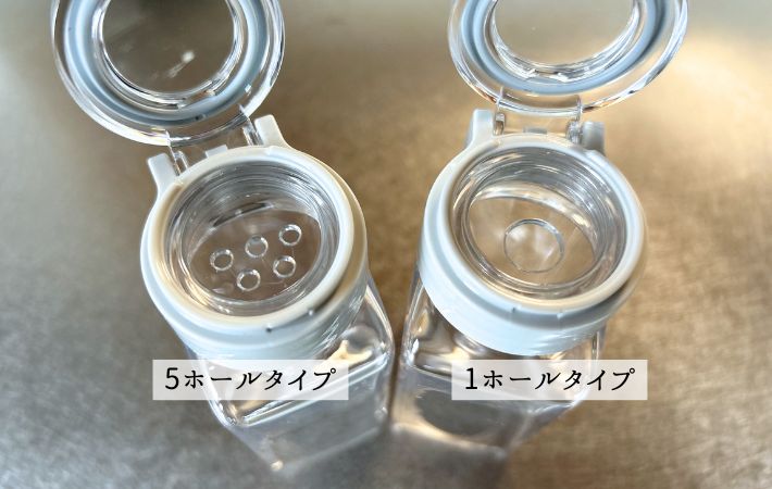 一方、5ホールタイプは、こしょうや七味、ドライハーブなど、振りかけて使うスパイスにぴったり。