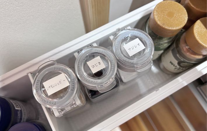 キッチンで意外とごちゃつきやすいのが、スパイスや調味料の収納。