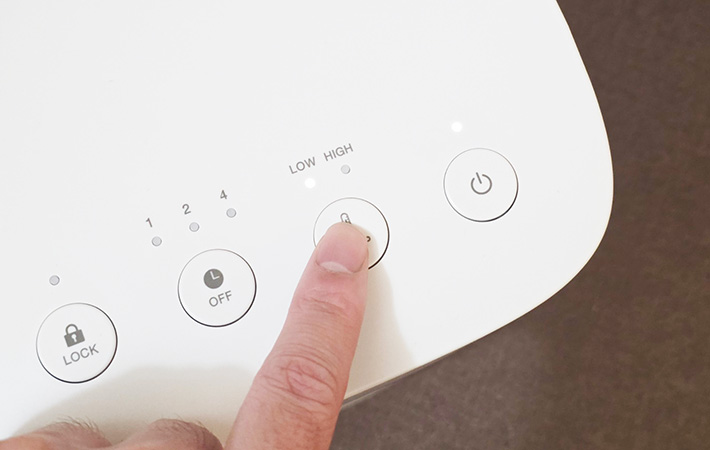 運転モードも『HIGH』と『LOW』の2種類だけと非常にシンプルで、迷わず使える点が安心でした。季節や室温に合わせて使い分けられます。