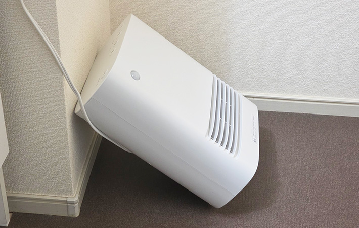 サイズはかなりコンパクトで、脱衣所の隅や洗面台の横にも無理なく設置可能。