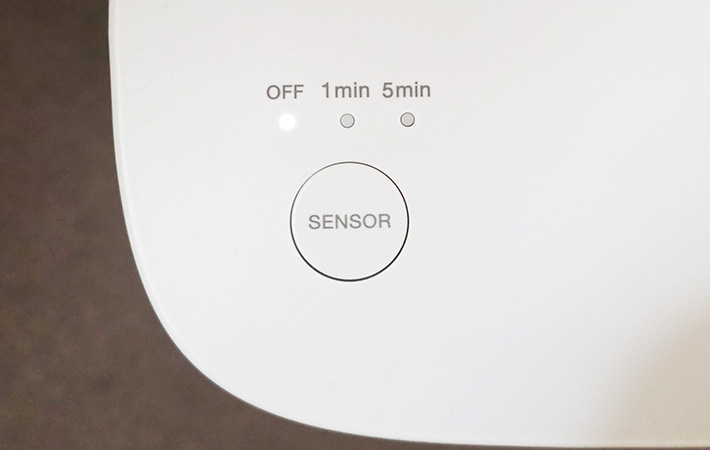 自動で停止する時間を1分と5分から選択できる