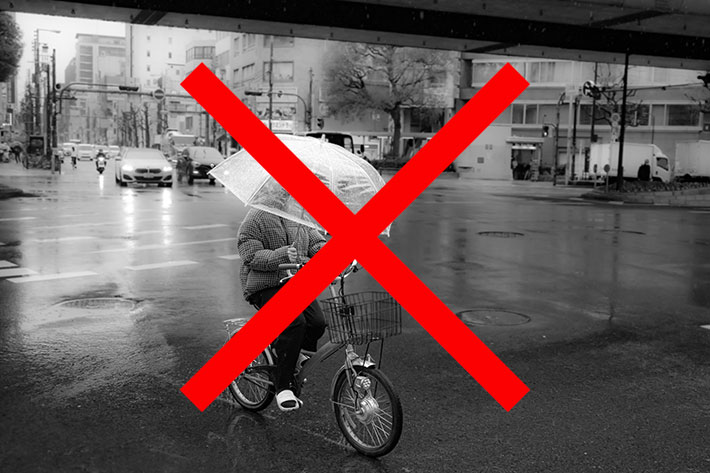 2026年4月から施行される交通反則通告制度では、傘を差したままの自転車運転が反則金の対象となります。