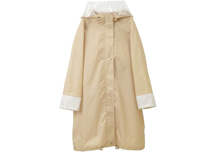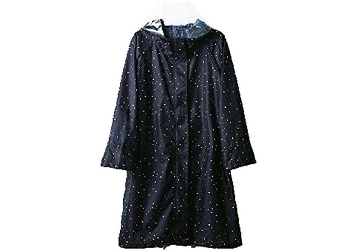 脚まわりまでしっかりカバーする丈で、雨の日の濡れを軽減します。ポケット付きで小物の収納にも便利です。