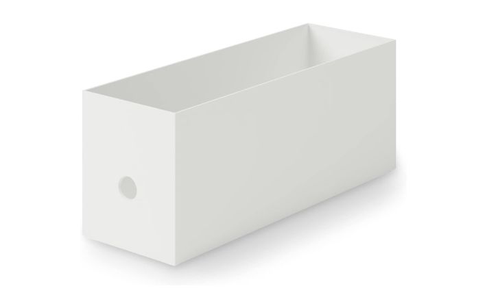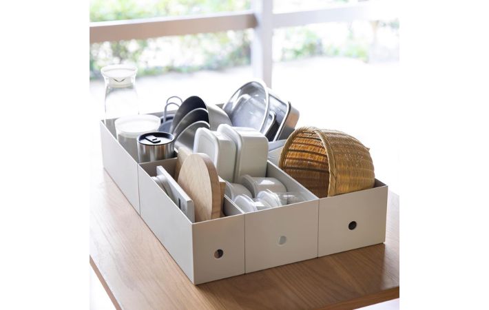 そのため、低い棚などのちょっとしたデッドスペースに収まりやすく、中に入れたものも上から見渡しやすいのが特徴。