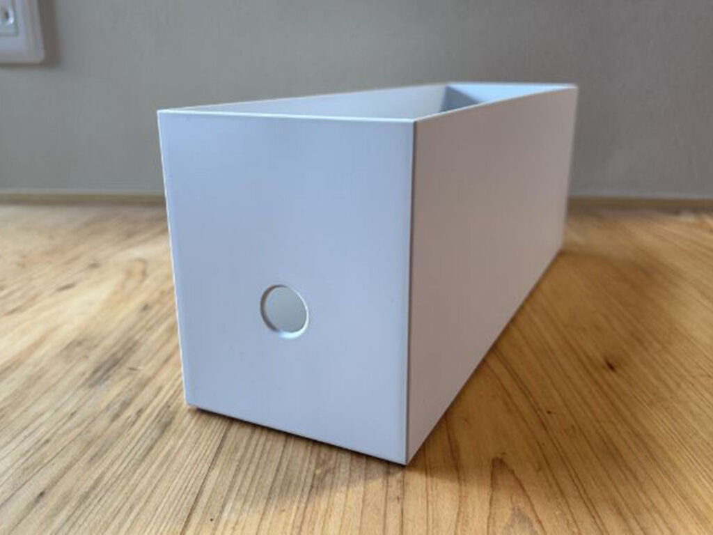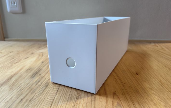 今回使った無印良品の『再生ポリプロピレン入りファイルボックス スタンダードタイプ・½』はそんな収納に最適。